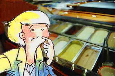 Nicht weit von unserem Haus gibt es ein kleines Eiscafé. Da gehe ich oft hin. Bei so vielen Eissorten muss ich mir jedes Mal echt lange überlegen. Deswegen kaufe ich mir zwei-drei Kugeln, weil ich mich nicht entscheiden kann. Am liebsten mag ich aber Erdbeereis mit Honig und Nüssen.