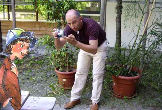 und sein Hobby ist Fotografieren. Er hat seine Fotokamera immer